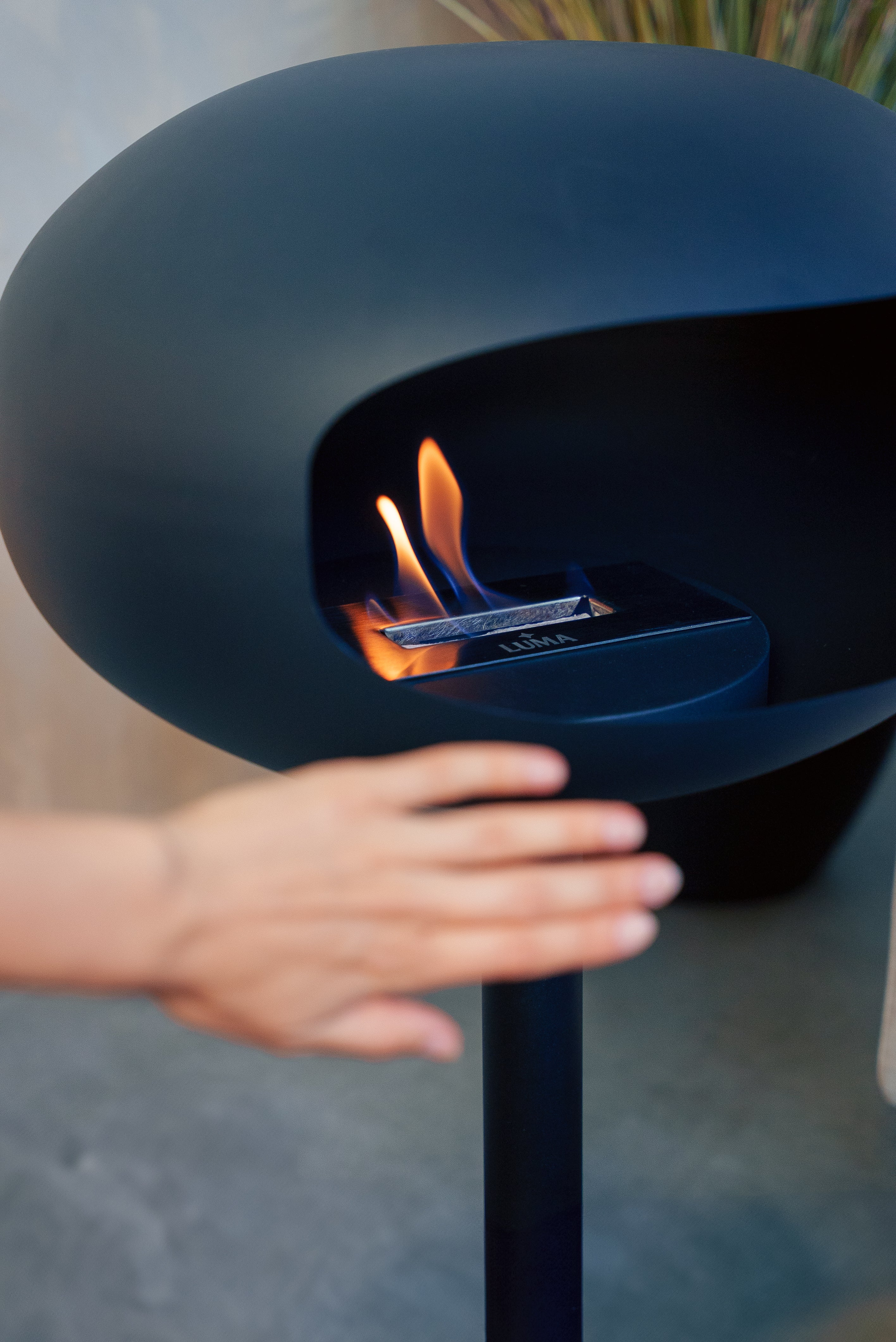 Hærdet sikkerhedsglas beskytter mod åbne flammer.